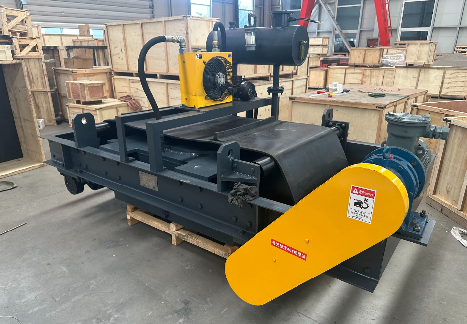 RCDF型油冷自卸式電磁除鐵器是在RCDE系列除鐵器的基礎增加了驅動電機、滾筒、帶刮板的卸鐵膠帶等組成的卸鐵機構。具有磁力大、散熱快、防塵、防雨、耐腐蝕、連續工作、維護費用低等優點。